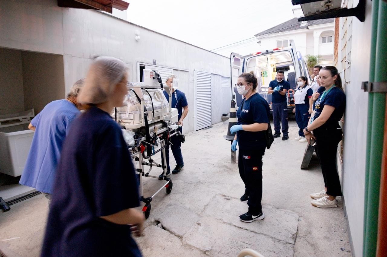 Veja imagens da transferência dos bebês da UTI da Clínica Santa Helena para a do Baía Sul Mulher: