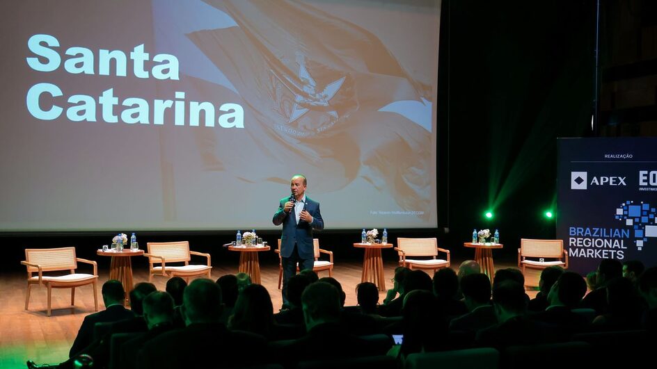 O evento foi realizado pela EQI Investimentos, de SC, e a Apex Partners, do Espírito Santos, ambas empresas com atuação nacional. Entre as lideranças de SC, também participaram os secretários de Estado Marcelo Fett, de Ciência, Tecnologia e Inovação; Beto Martins, de Portos, Aeroportos e Ferrovias, João Paulo Gomes Vieira da Comunicação, o presidente da SCPar, Renato Lacerda; o presidente da Associação Catarinense de Tecnologia (Acate), Iomani Engelmann, os prefeitos de Balneário Camboriú, Fabrício Oliveira, e de Blumenau, Mário Hildebrandt, e o diretor do Sebrae-SC, Carlos Henrique Fonseca.