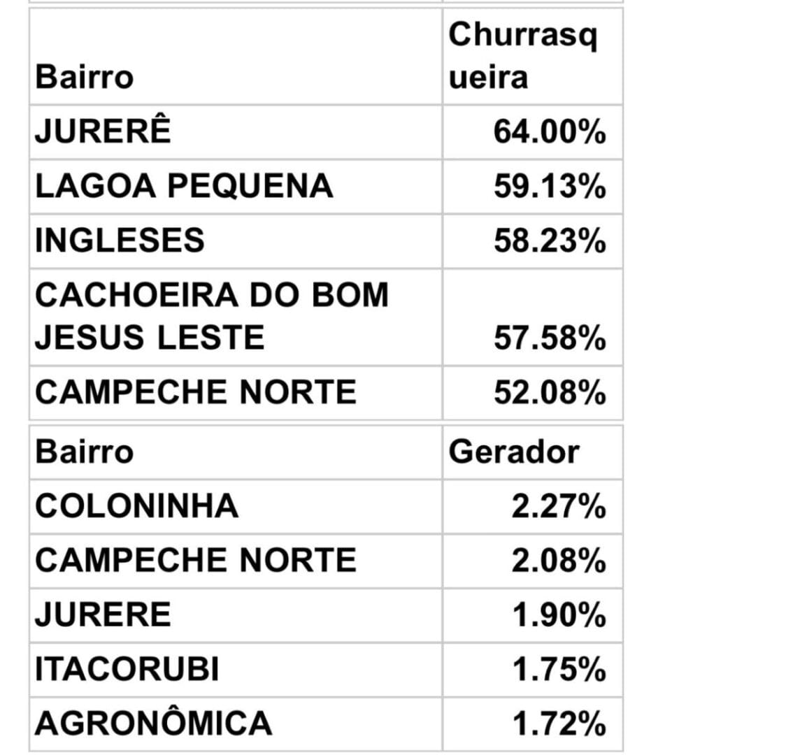 O ranking da Loft traz na sequência os bairros Agronômica, Jurerê, Lagoa Pequena, Campeche Norte e Praia Brava. Eles integram o segundo grupo com maior presença de amenidades, uma média de cinco cada edifício.