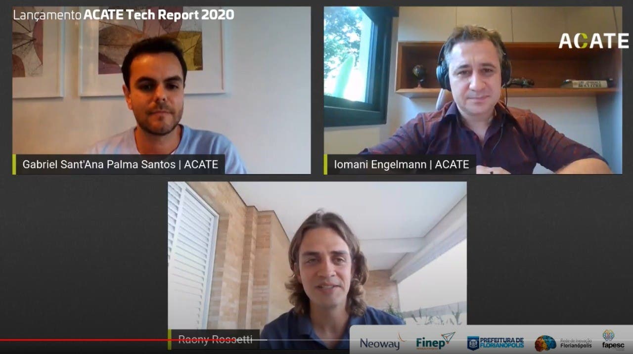 O lançamento do Tech Report 2020 foi realizado por videoconferência nesta terça-feira. Contou também uma entrevista concedida pelo empresário Raony Rossetti ao diretor executivo da Acate, Gabriel Sant’Ana.