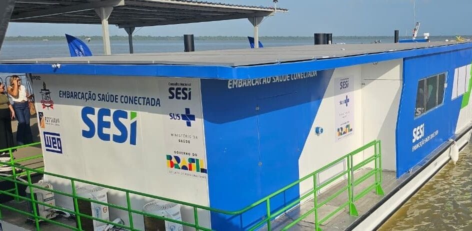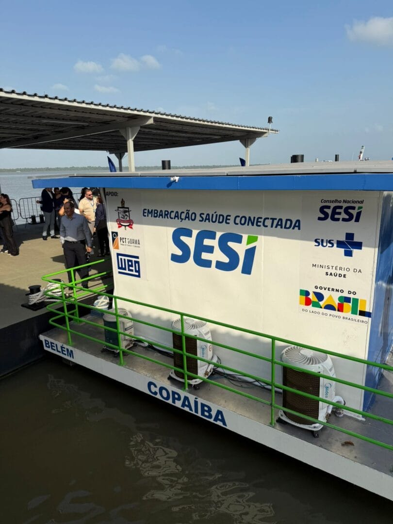 Um dos equipamentos com tecnologia sustentável lançados durante a COP30 é a embarcação Saúde Conectada Sesi, entregue sexta-feira, em Belém, no Pará. O barco catamarã conta com sistema elétrico totalmente desenvolvido, testado e entregue pela WEG, multinacional catarinense de equipamentos eletroeletrônicos com atuação global.