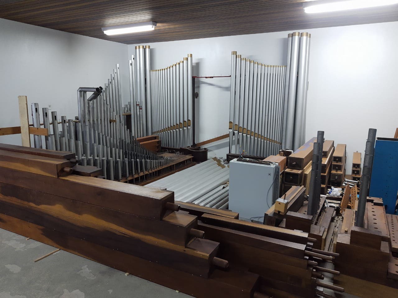 São ao todo 1.181 tubos que precisaram ser retirados um a um do alto da igreja. A consola, como é chamada a mesa de comando do órgão, será levada para a empresa responsável pela operação, que fica em Porto Alegre. Lá passará por novo restauro, com a substituição de peças que virão Alemanha.