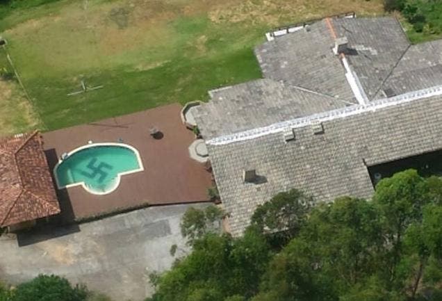 A foto da suástica na piscina foi feita de helicóptero, em 2014, por policiais que atendiam a uma ocorrência de assalto em Rio dos Cedros e sobrevoaram o sítio do professor, no interior de Pomerode. Pugliesi não chegou a ser denunciado porque a polícia, à época, considerou que ele não fazia propaganda nazista ao manter o símbolo dentro de casa.