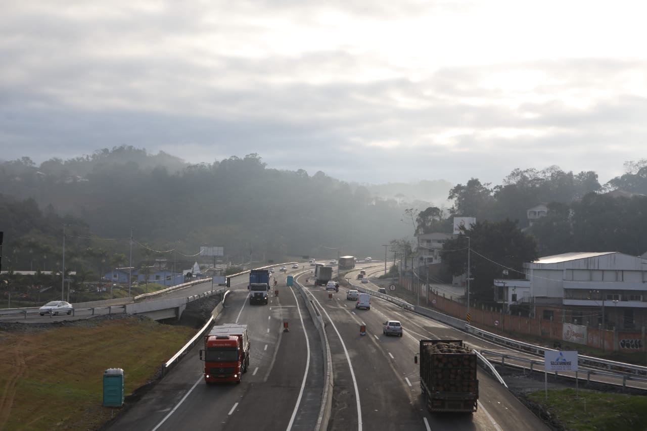A duplicação da BR-470 na região do viaduto da Mafisa passou pelo primeiro teste. Entre a manhã de segunda-feira (17) e esta terça, o trânsito fluiu a maior parte do tempo. Cenário bem diferente do que se via naquele trecho há anos. Só não está completamente resolvido o gargalo porque um semáforo ainda forma filas na entrada da SC-108.