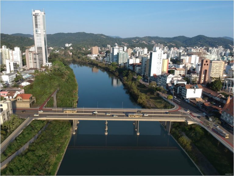 Ivan Naatz (PL) agora apresenta outro traçado: uma ponte da Rua Uruguai, na Ponta Aguda, até a Beira-Rio — que pouco resolveria a situação de quem fica parado nas filas da Rua Itajaí.