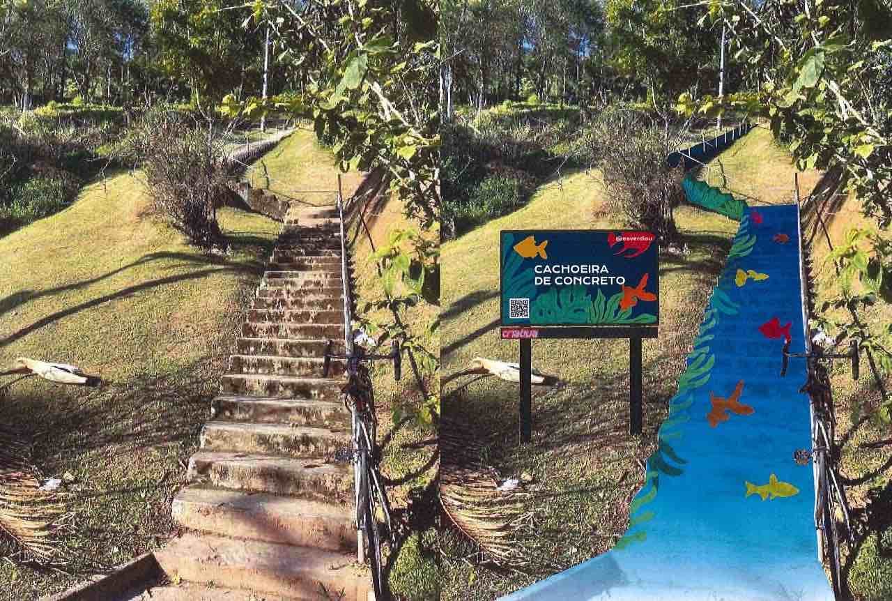 A antiga escadaria que liga a Rua Itajaí ao restaurante Frohsinn, no alto do Morro do Aipim, em Blumenau, vai virar uma “cachoeira de concreto”. Os 121 degraus serão transformados pela artista blumenauense Elisa Joana da Silva a convite da Secretaria de Turismo e Lazer (Sectur), que pretende fazer do local um ponto turístico. A ideia é valorizar a natureza e tornar o lugar mais convidativo para um passeio.