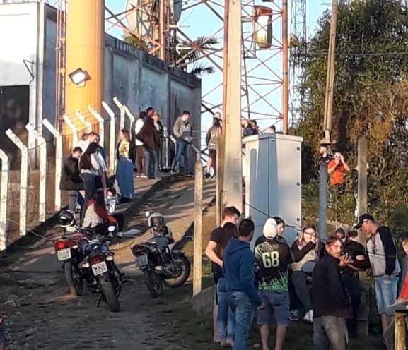Segundo os profissionais que trabalham no alto do morro, a Polícia Militar já foi acionada e dispersou um grupo. Meia hora depois da viatura afastar-se, os jovens retornaram. Segundo o Secretário de Defesa Civil, Carlos Menestrina, o órgão recebeu denúncias de aglomerações apenas no início da pandemia.