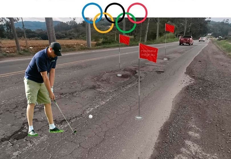 Só com muito bom humor para suportar os buracos da BR-470. Em Rio do Sul, motoristas inconformados com a falta de manutenção da rodovia anunciam um “torneio de golfe” em pleno asfalto. Não faltam crateras para servirem de alvo. O evento via redes sociais ganhou a adesão de quase 3 mil pessoas e ensejou uma série de posts que ridicularizam a situação da estrada e o Departamento Nacional de Infraestrutura de Transportes (DNIT). As obras de recuperação da pista, prometidas desde o início do ano, estão atrasadas devido às chuvas.