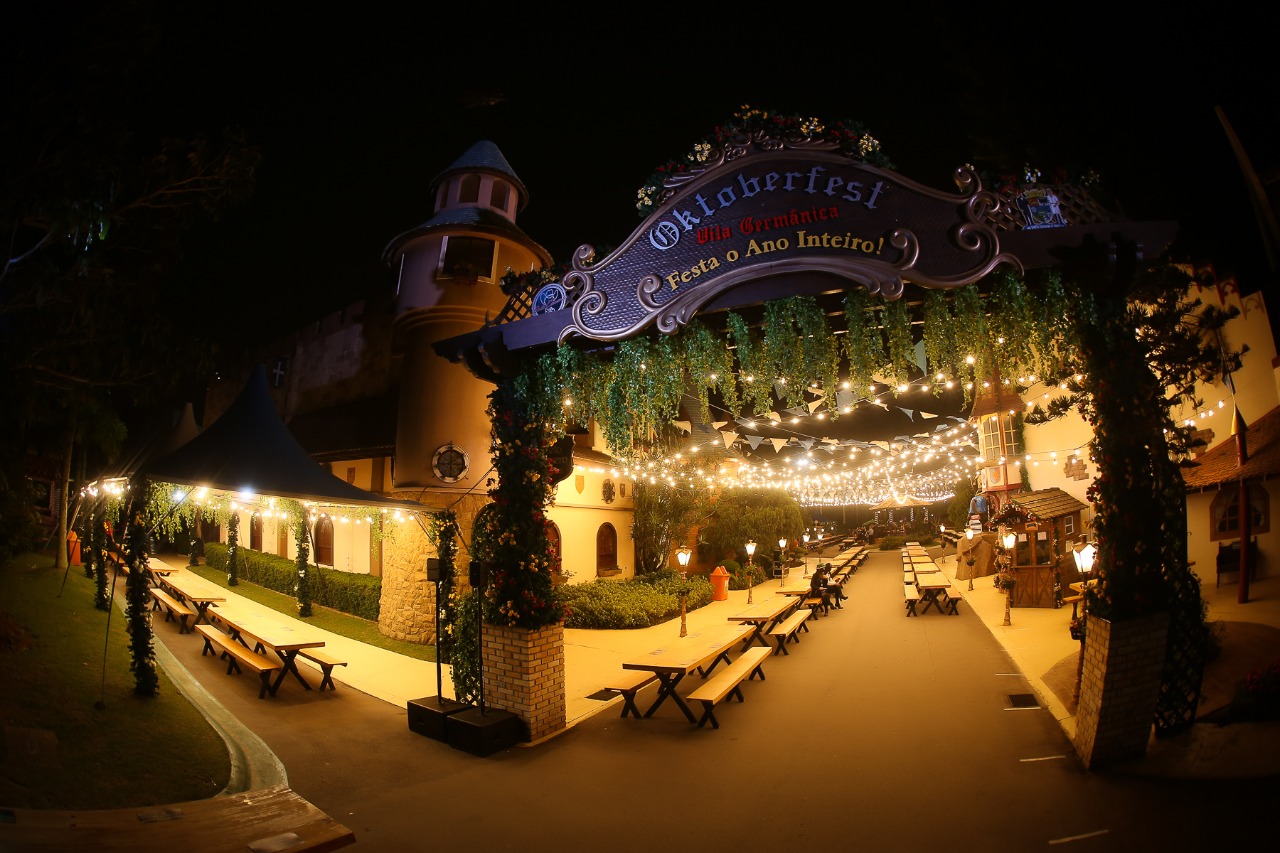 Durante o dia, faz sentido. Comida, bebida e música são oferecidas dentro de espaços já abertos à visitação, inclusive com uma vila germânica instalada — uma das mais antigas atrações do parque. À noite, é um pouco diferente.