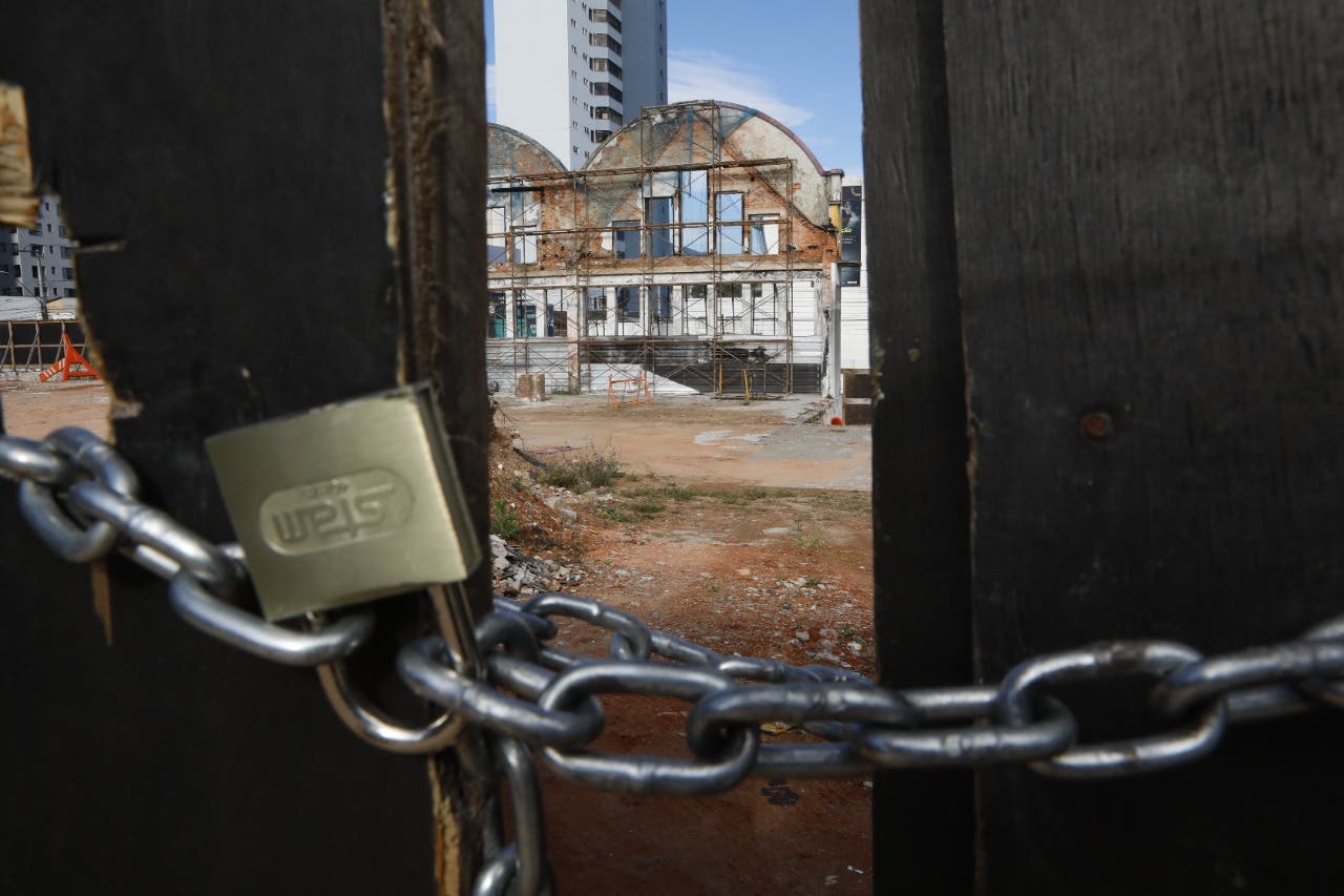 A parede que restou em pé tem problemas. O empreendedor pediu permissão para destrui-la, mas o Conselho de Planejamento Urbano decidiu bancar um laudo estrutural para checar se é mesmo inviável recuperá-la. Considerada de valor histórico, a construção data da década de 1940 e foi desenhada pelo arquiteto alemão Simão Gramlich.