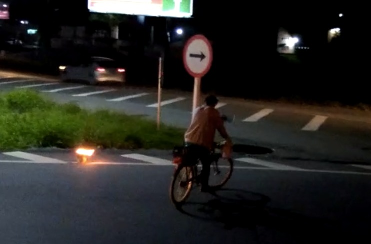 A Polícia Militar Rodoviária (PMRv) resolveu agir por conta própria para tentar evitar novos acidentes na alça de acesso à SC-108, recém-inaugurada no complexo da Mafisa. Nas noites de sexta e sábado (5), latas com combustível, provavelmente querosene, iluminaram o traçado para conduzir os motoristas em segurança.
