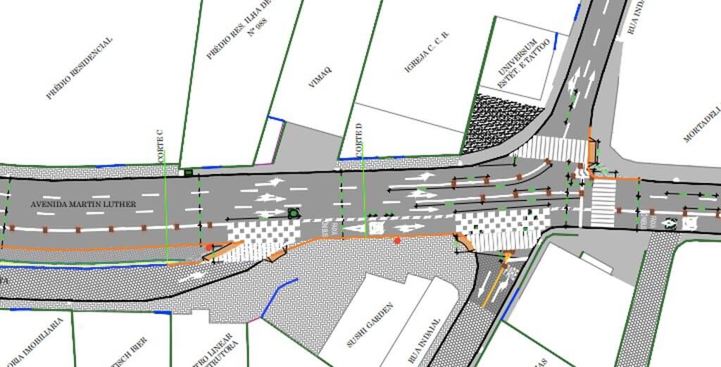 O projeto consiste em recuar a calçada a partir da entrada do Boa Vista e até a Rua Indaial para adicionar uma faixa extra de veículos. Com isso, os motoristas poderão usar duas pistas para virar à esquerda na Rua Indaial e sobrará uma terceira, exclusiva para seguir reto na Martin Luther — e ainda o corredor de ônibus. Hoje esse ponto tem retenções que param quase toda a avenida.