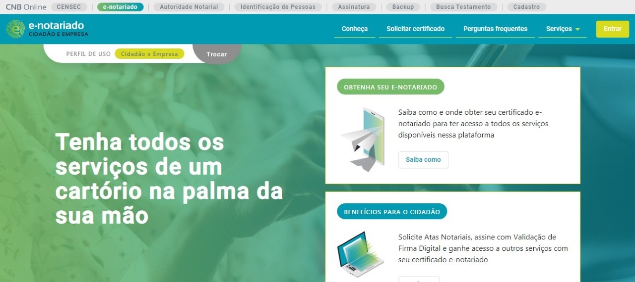 De forma online, pelo site, ou via APP, os cidadãos podem requerer eletronicamente que os cartórios lavrem atas notariais, façam o reconhecimento digital de firma (assinatura), entre outros. Informações pelo telefone (61) 3323-4683.