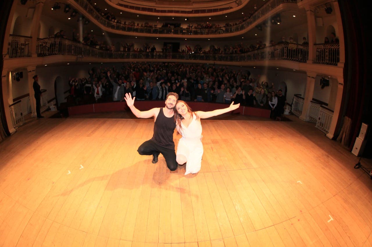Ana Guasque e Conrado Caputo interpretam um casal de atores que ensaiam uma peça com textos de Tchecov, Aristófanes e Shakespeare, enquanto compreendem um ao outro e discutem a relação. Uma verdadeira DR para superar o amor e mágoas, com leveza e bom humor. No enredo de “Amores do Palco”, eles buscam a reconciliação e compreendem que se amam.