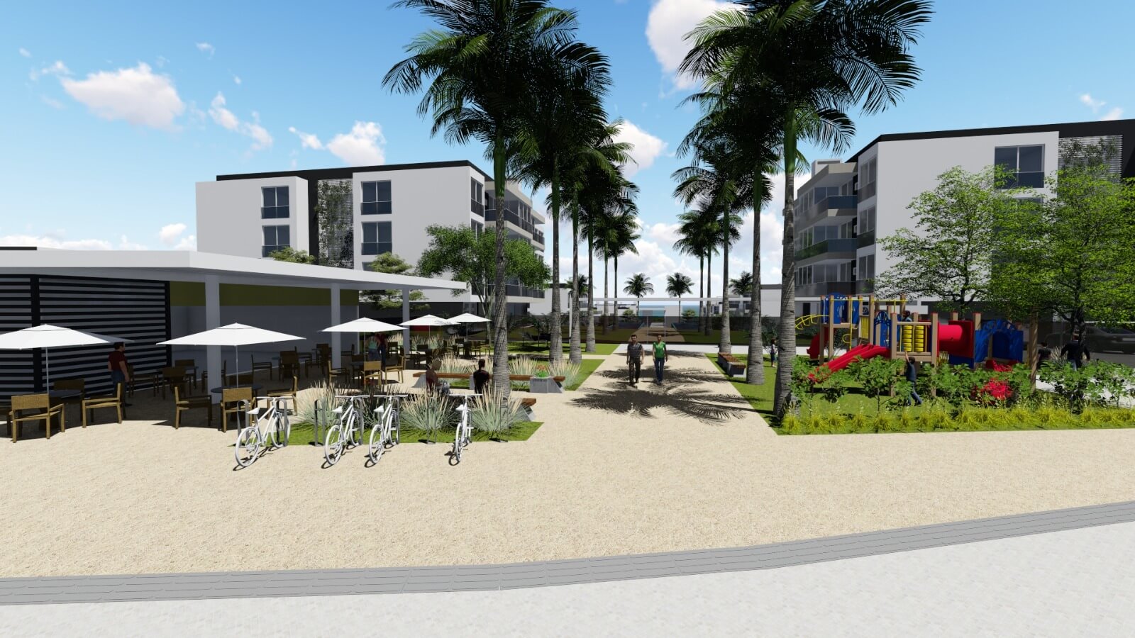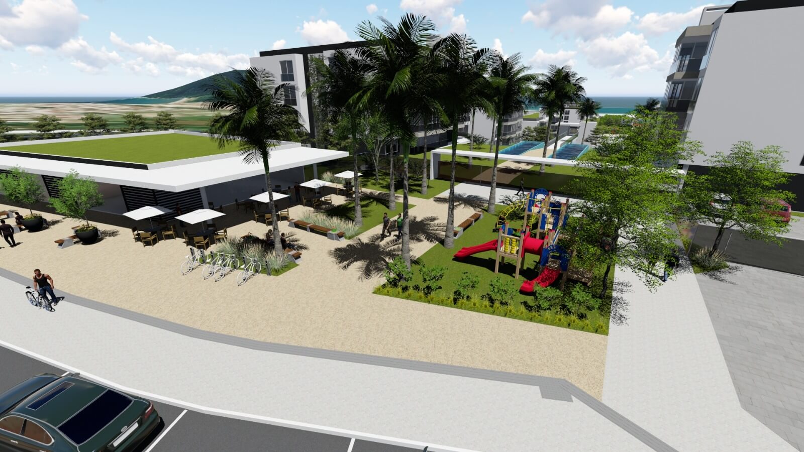 O amplo jardim do Catarina Village funcionará como se fosse um grande parque