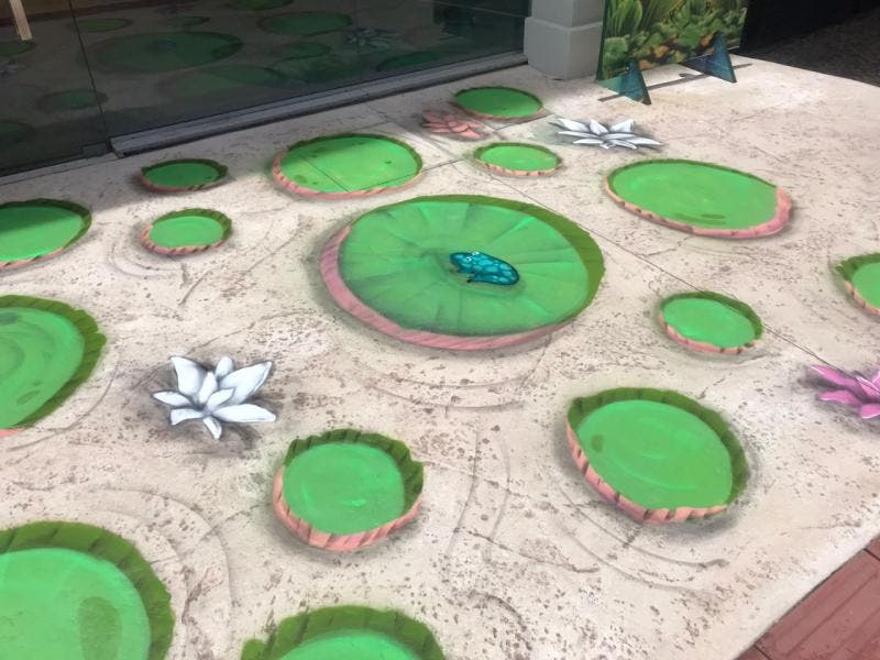 Com pintura realista, os desenhos das vitórias-régias tridimensionais dão a sensação de estarem flutuando sobre as calçadas. O trabalho detalhado abusa de cores e sombras e utiliza a técnica de graffiti (pintura com spray a mão livre) ao estilo freehand, onde o artista monta a arte de acordo com o espaço disponível e encaixe das peças.