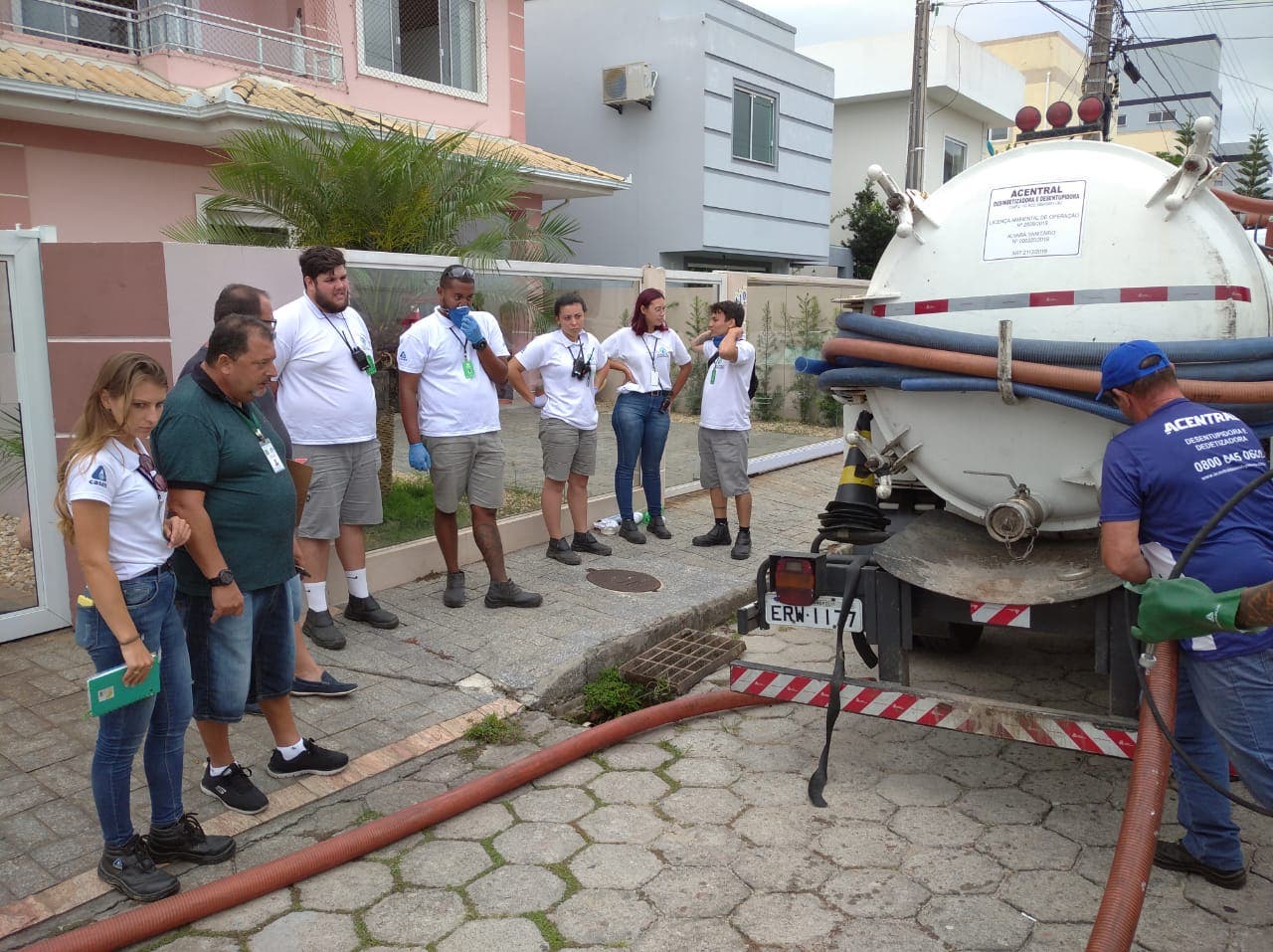 O caminhão serviu para desobstruir a rede pluvial, cheia de esgoto proveniente de tanque e máquina de lavar, em frente à casa que sofreu o lacre da ligação irregular. Em outro ponto da rua, a drenagem, também com efluentes visíveis, precisou ser sugada pelo veículo.