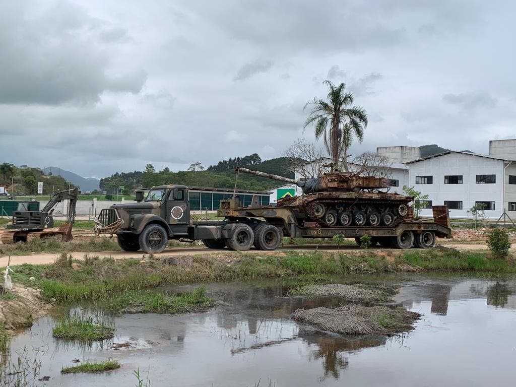 Máquinas, equipamentos, viaturas, capacetes, canhões, jipes alemães, tanques das duas guerras mundiais, já se encontram nos galpões e nos pátios do Parque Temático Histórico e Cultural 14. BC, que está sendo construído e deverá ser inaugurado em 18 meses. Fica as margens da BR-101, em Morretes, município de Tijucas.