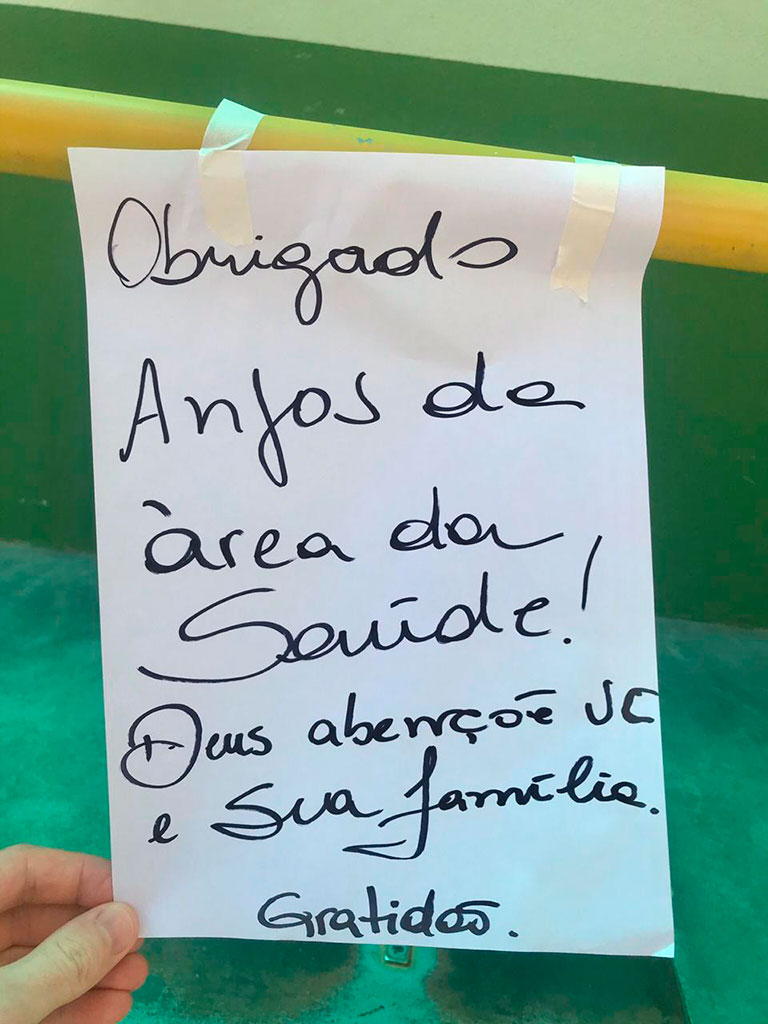 Em cada bilhete havia uma mensagem de agradecimento. “Obrigado anjos da saúde! Deus abençoe vc e sua família. Gratidão”, dizia um deles. Mais que agradecimento, a mensagem deve servir de estímulo, já que tudo indica que o pior ainda está por vir.
