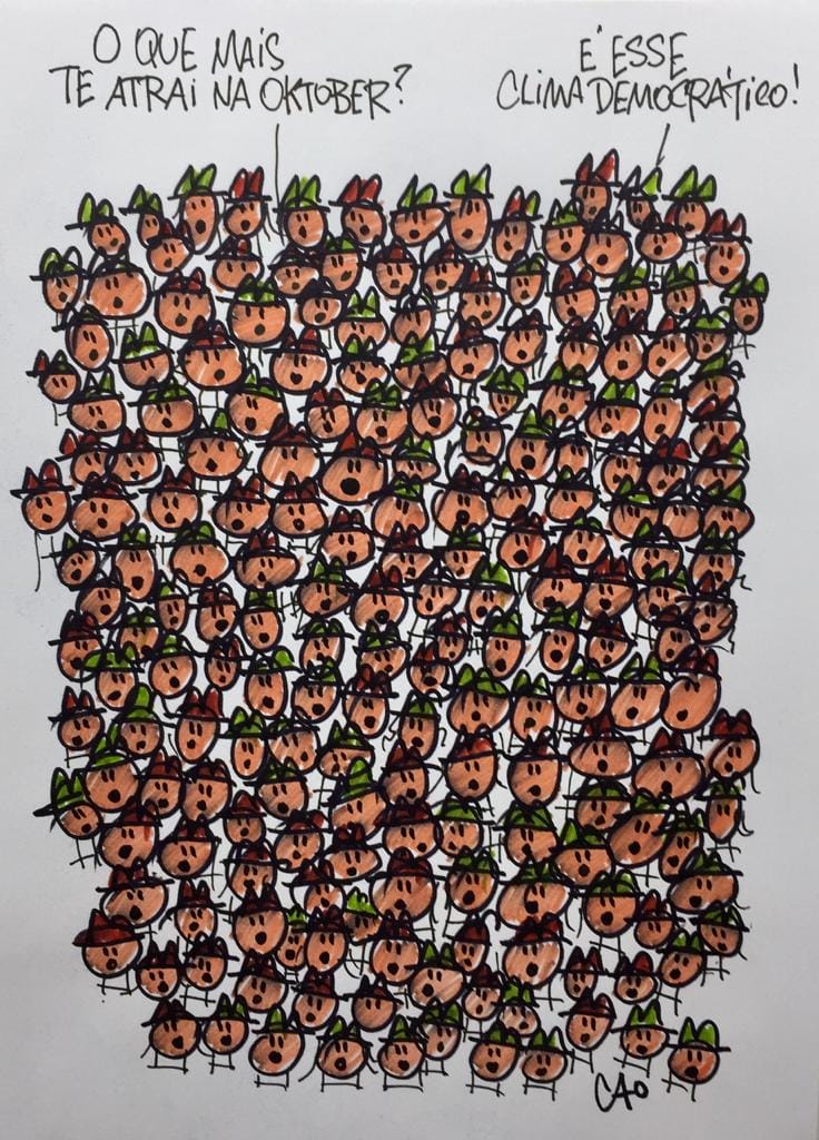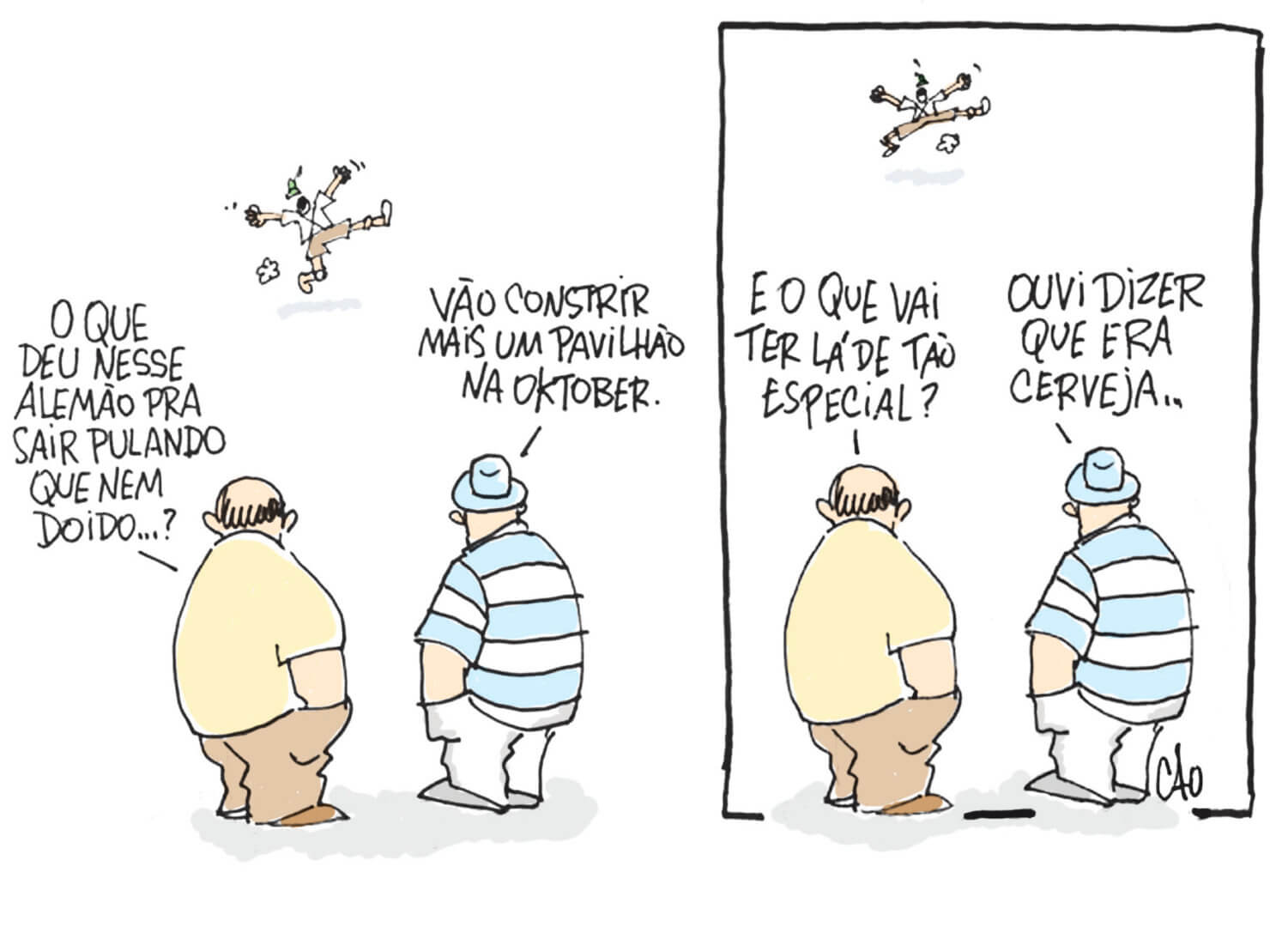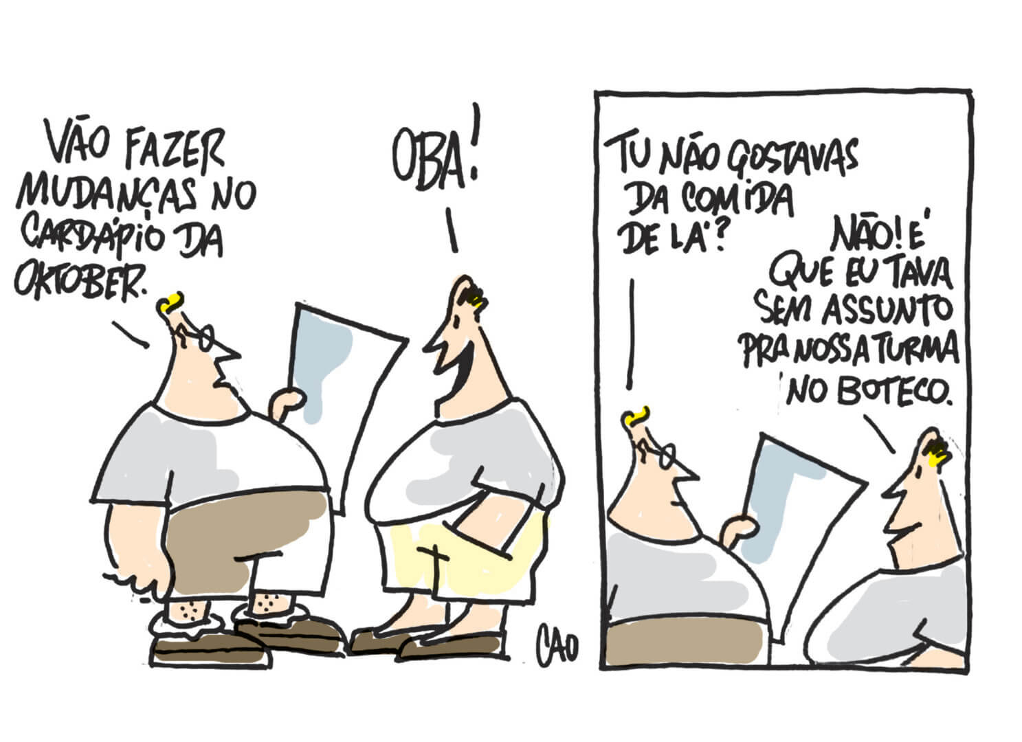 Ao longo de sua carreira, Cao abusou da perspicácia, do refino e da acidez – com o raro dom de muitas vezes misturar tudo isso em uma mesma tirinha de jornal. Fez piada, sugeriu, criticou, alfinetou, discordou, contrariou. Seus traços inconfundíveis e personagens memoráveis – como a intrépida dupla de “alemóns” Ralf und Rolf – fizeram os leitores do Santa rirem, refletirem, sentirem raiva, indignação. Não existe prêmio maior para alguém da comunicação do que ver seu trabalho despertar todo tipo de emoção nas pessoas.