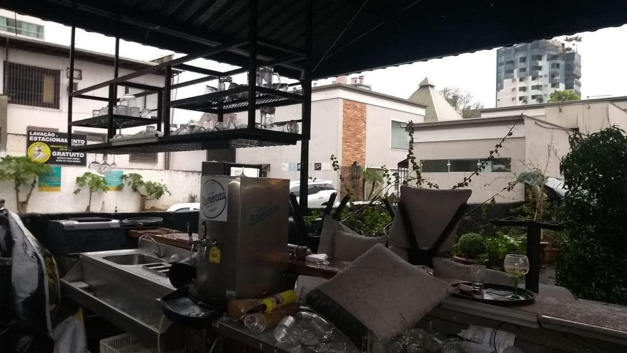 O ciclone desta terça-feira (30) que destelhou casas, derrubou árvores e provocou estragos no Vale e em todo o Estado também atingiu restaurantes de Blumenau.