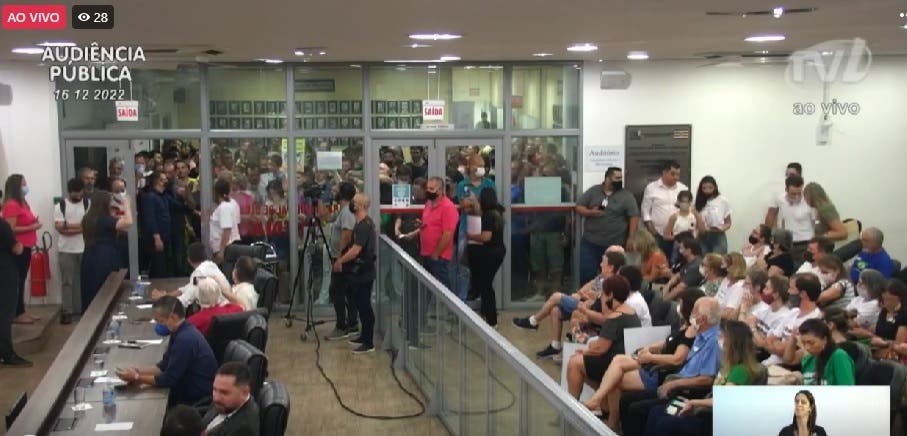 Houve pressão para que as portas fossem abertas. A vereadora Silmara Silva Miguel (PSD), proponente da discussão, precisou intervir e apelar para acalmar os ânimos dos mais exaltados.