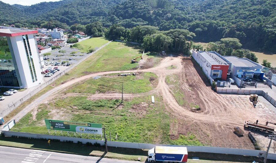 Máquinas já estão sendo vistas em um terreno no bairro Vorstadt, em Blumenau, ao lado do Centro Empresarial. Ali a Cooper começou a construir sua nona loja na cidade. Será uma unidade da bandeira Super, a mais tradicional da cooperativa.