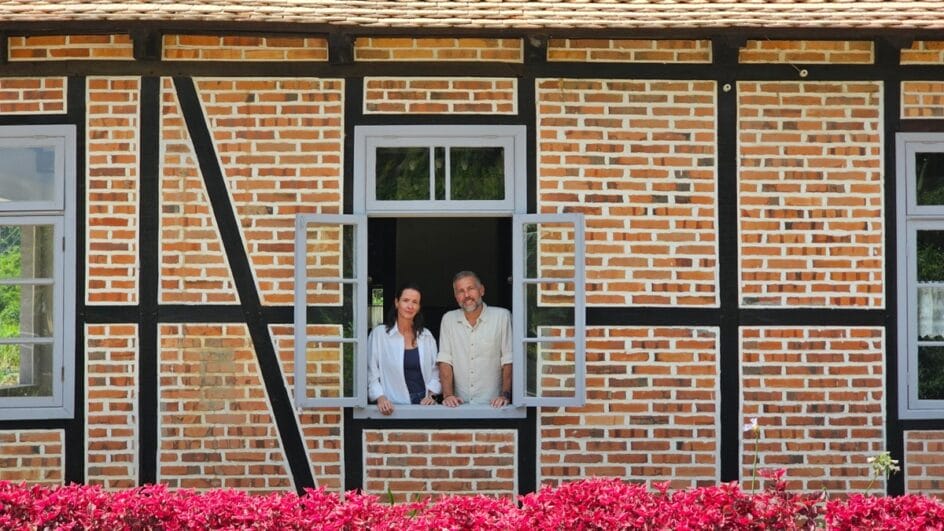 Maitê Lang e Ivan Blumenschein compraram e restauraram uma casa enxaimel centenária para o novo negócio (Foto: Divulgação)