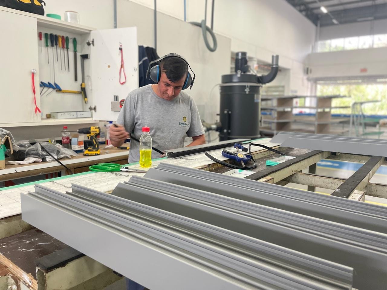 A fábrica tem cerca de 10 mil metros quadrados de área construída. Numa parte do galpão, a Embraed tem uma marcenaria própria, responsável pela produção de até 2,5 mil portas por ano. Ao longo dos anos, o produto foi sendo aprimorado com tecnologias especiais de acústica e vedação. Há modelos que, de tão robustos, chegam a pesar 45 quilos, mais do que o dobro de uma porta tradicional.