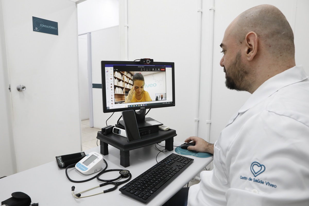 Para os colaboradores de Blumenau, os atendimentos são feitos de forma presencial. Para quem trabalha em outras unidades da Viveo espalhadas pelo país, as consultas ocorrem via telemedicina (foto). Implantada em 2020, a novidade vem caindo nas graças dos trabalhadores. Entre janeiro e setembro, a procura por especialistas aumentou 33% na comparação com 2021.