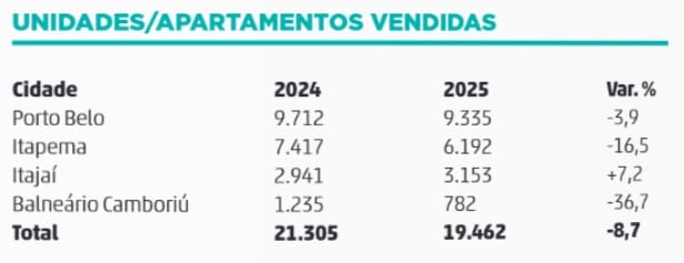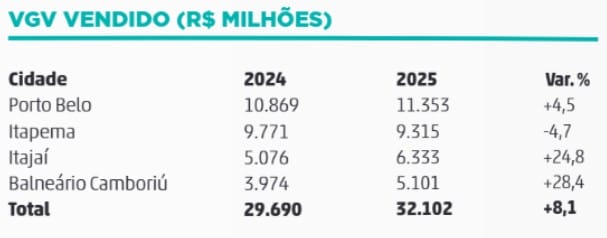 O principal cinturão do mercado imobiliário do Litoral catarinense diminuiu o ritmo de lançamentos de novos empreendimentos residenciais e de unidades vendidas em 2025, mas ainda assim conseguiu faturar mais. Juntas, as cidades de Balneário Camboriú, Itapema, Itajaí e Porto Belo somaram, no último ano, vendas de R$ 32,1 bilhões, alta de cerca de 8% na comparação com o ano anterior.