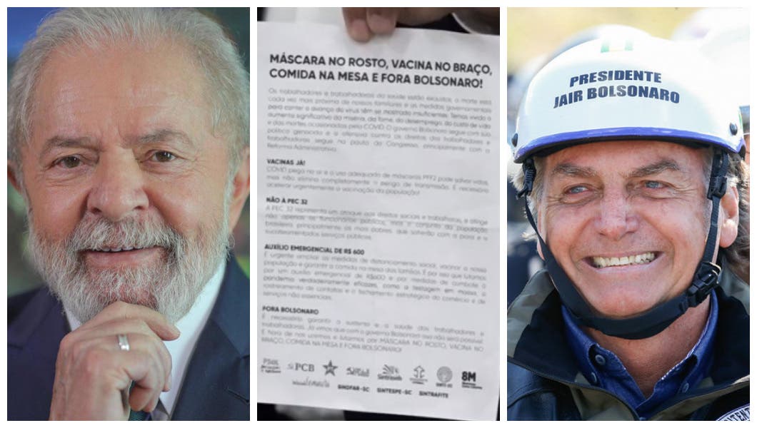 O material é intitulado “Máscara no rosto, vacina no braço, comida na mesa e fora Bolsonaro!” e conta com a adesão de legendas de esquerda, movimentos sociais e sindicatos de trabalhadores. Além da crítica ao presidente, os autores cobram mais celeridade na vacinação da população, pedem auxílio-emergencial de R$ 600 e atacam a proposta de reforma administrativa (PEC 32), que segundo eles retira direitos sociais e trabalhistas de funcionários públicos.