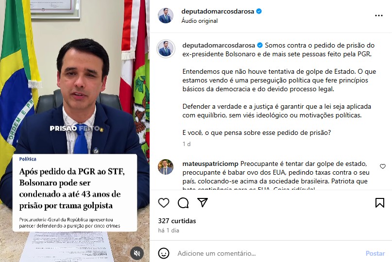 O deputado estadual Marcos da Rosa (União) não havia se pronunciado sobre a operação em suas redes sociais até o meio da tarde desta sexta. Mas, na quinta, publicou um vídeo em defesa de Bolsonaro.