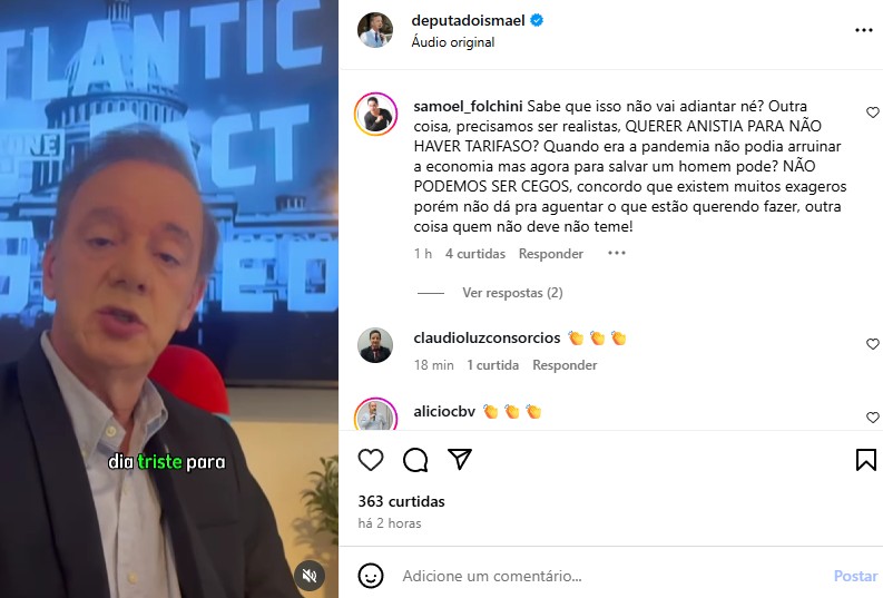 Ismael também citou que ele e outros parlamentares em Brasília protocolaram, no Senado, um pedido de impeachment contra o ministro Alexandre de Moraes, do Supremo Tribunal Federal (STF), alegando supostas violações de direitos constitucionais.
