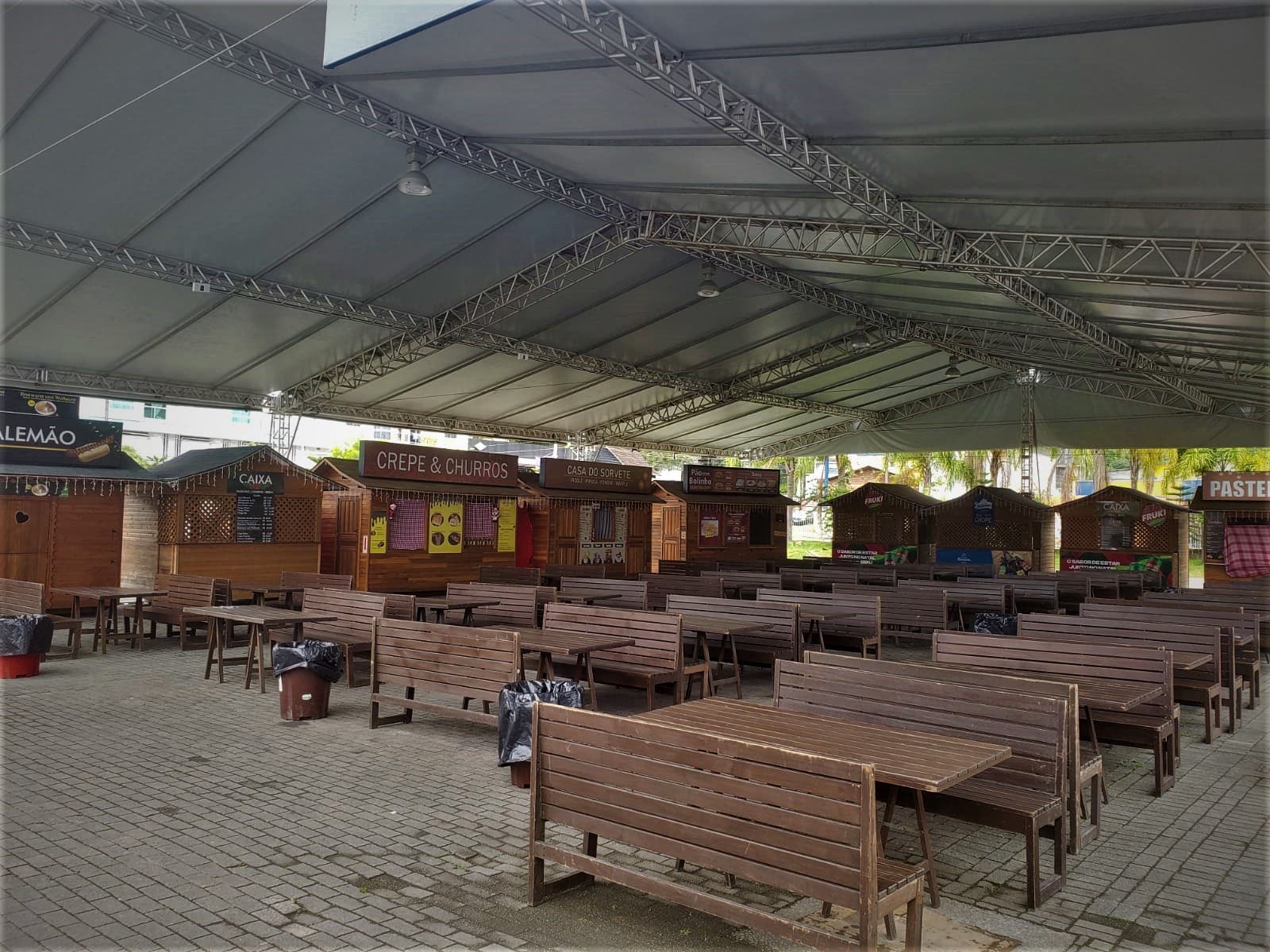 Apesar do cancelamento da Sommerfest Blumenau 2022, anunciada nesta quarta-feira (5) pelo prefeito Mário Hildebrandt (Podemos), a praça de alimentação instalada em frente ao Biergarten, na Vila Germânica, deve ser mantida durante os dias em que a festa deveria ocorrer. A estrutura ajudaria a dar suporte para o evento.