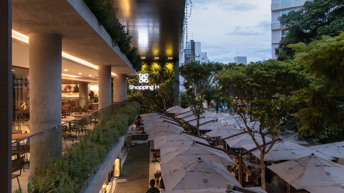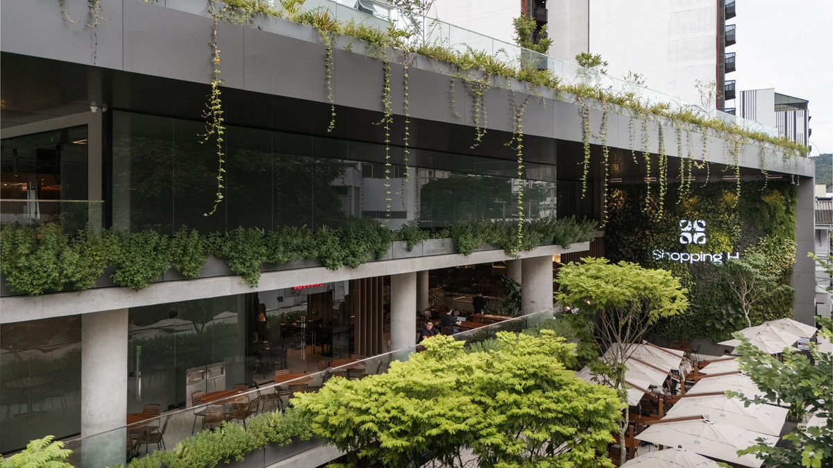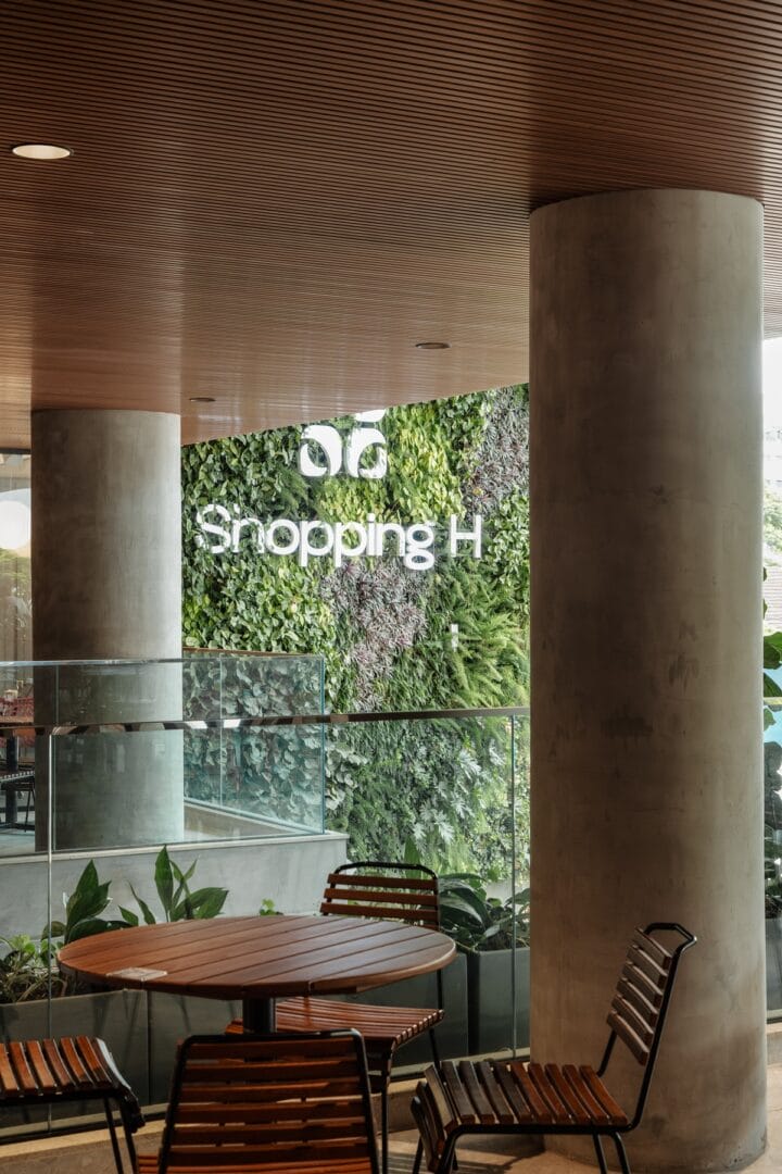 O projeto incluiu modernização das fachadas e interiores, flexibilidade no layout das lojas – para acomodar tanto pequenas operações quanto âncoras, aumentando as possibilidades de locação – e integração com a cidade. Primeiro espaço do novo Shopping H reaberto ao público, no fim do ano passado, a praça de alimentação ao ar livre se tornou um dos pontos mais frequentados da Rua Curt Hering.