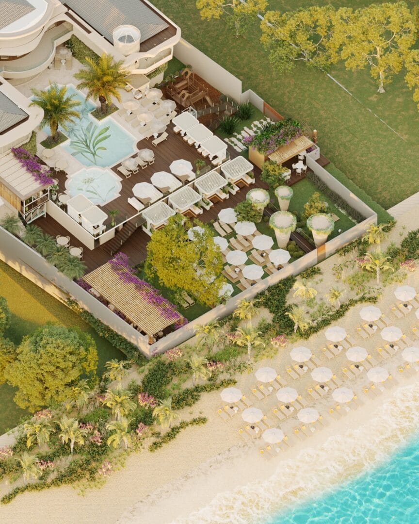 Na parte residencial, o projeto prevê um resort de alto padrão com 288 apartamentos que terão entre 40 e 80 metros quadrados. Já o “braço” de entretenimento terá como destaque um beach club pé na areia exclusivo para membros na Praia do Estaleirinho, mas com restaurante de gastronomia mediterrânea aberto ao público mediante reservas – a inauguração acontece já na próxima quarta-feira (21).