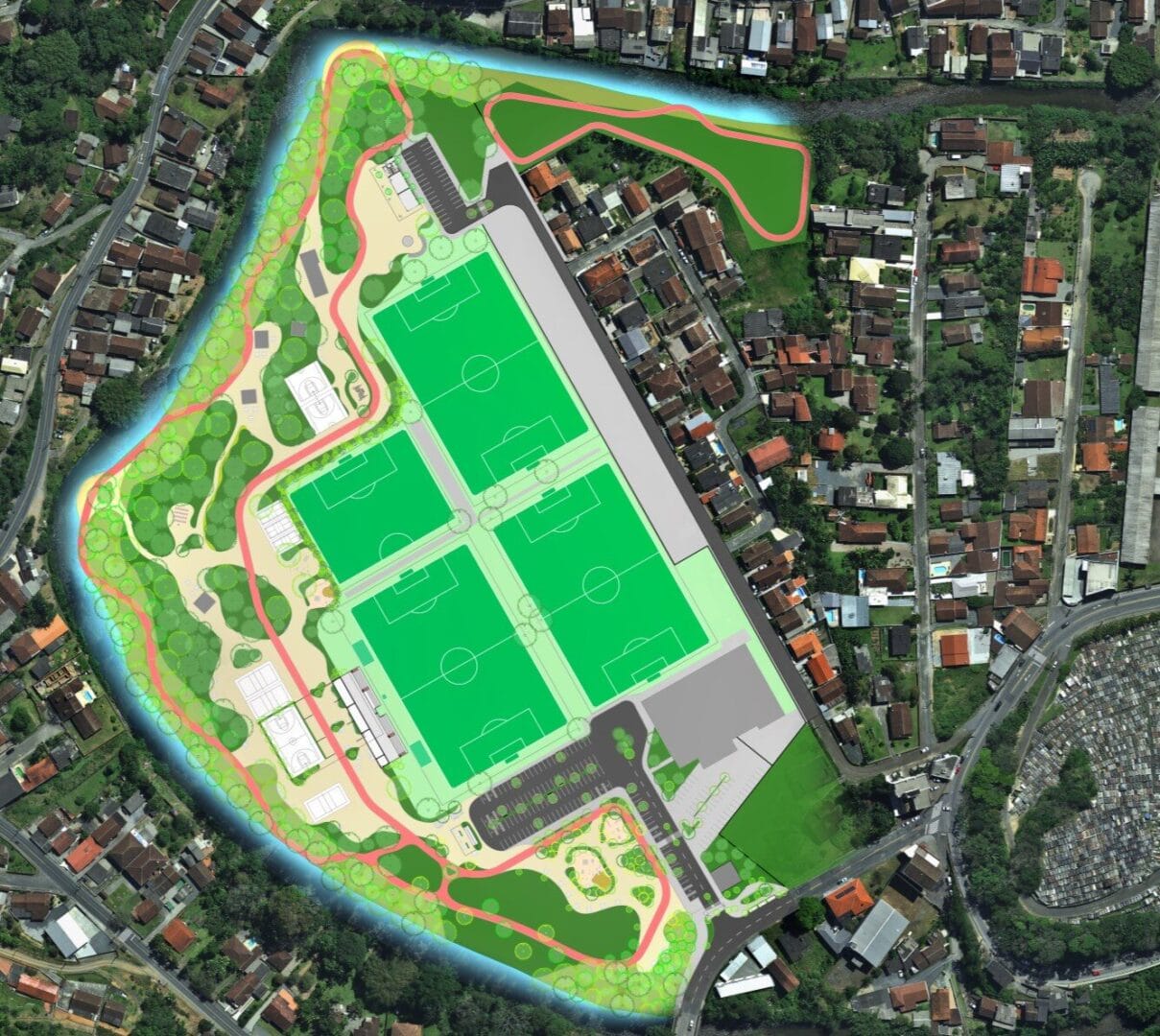 A diretoria do Blumenau Esporte Clube SAF apresentou à prefeitura da cidade um projeto para assumir uma eventual e futura concessão do Parque Prefeito Carlos Curt Zadrozny (a antiga Associação da Artex), no bairro Garcia. Detalhes da proposta, obtidos em primeira mão pela coluna, revelam a intenção de dividir a estrutura em duas partes. Uma, privada, seria reservada a um centro de treinamentos do clube com até 43,1 mil metros quadrados, que ocuparia 45% do total da área do parque. O restante permaneceria aberto à comunidade, com equipamentos esportivos e de lazer públicos.