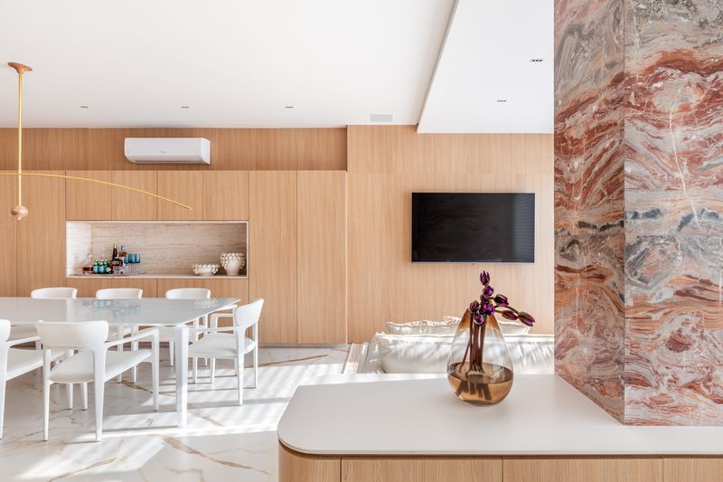 O projeto é assinado por Marice Gandin, que também é diretora da Gandin Construtora, anfitriã da mostra deste ano. O apartamento é ambientado no Villa Maiorca, arranha-céu de 46 andares e 160 metros de altura que conta ainda com quase 2 mil metros quadrados de área de lazer distribuída em dois pavimentos.