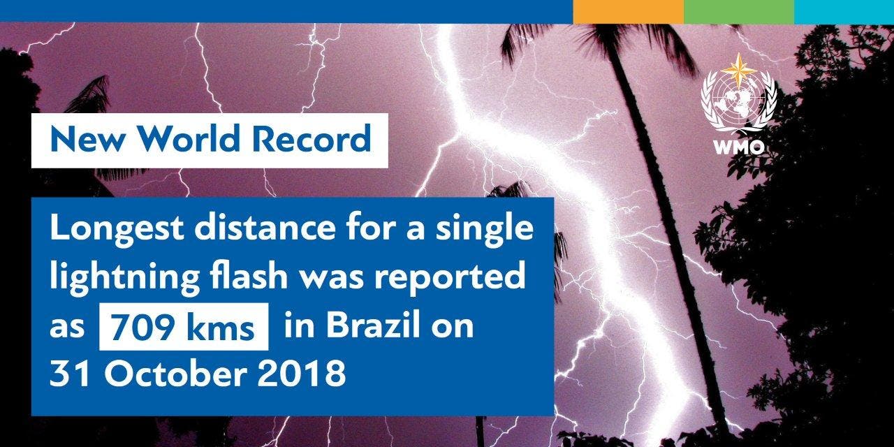 BREAKING: The @WMO just announced that @NOAA #satellites helped it confirm two new #WorldRecords for #lightning–the longest single lightning bolt (captured by #GOES16's #GLM above) and the greatest single lightning flash duration! Get the details here: https://t.co/ZHItdC63yZ pic.twitter.com/sfdsNVU4Bh