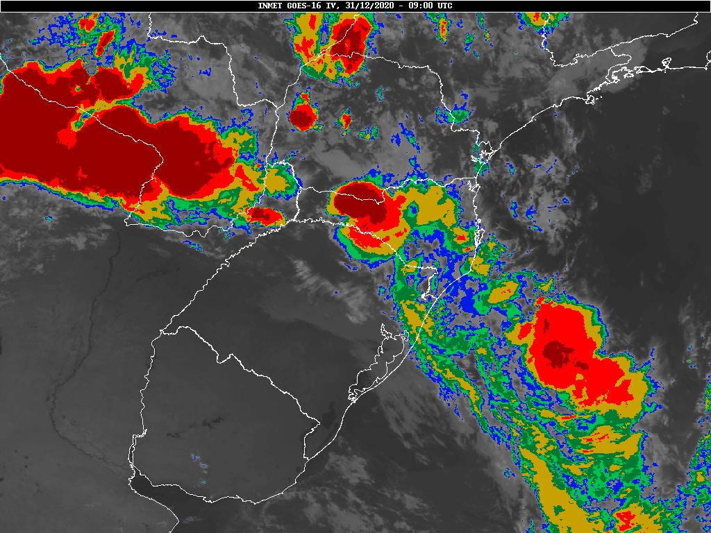 A imagem de satélite que coloquei é do início da manhã deste último dia do ano. Ela mostra muitas nuvens, algumas carregadas, devido a passagem de uma frente fria. Esta é a influência em SC.
