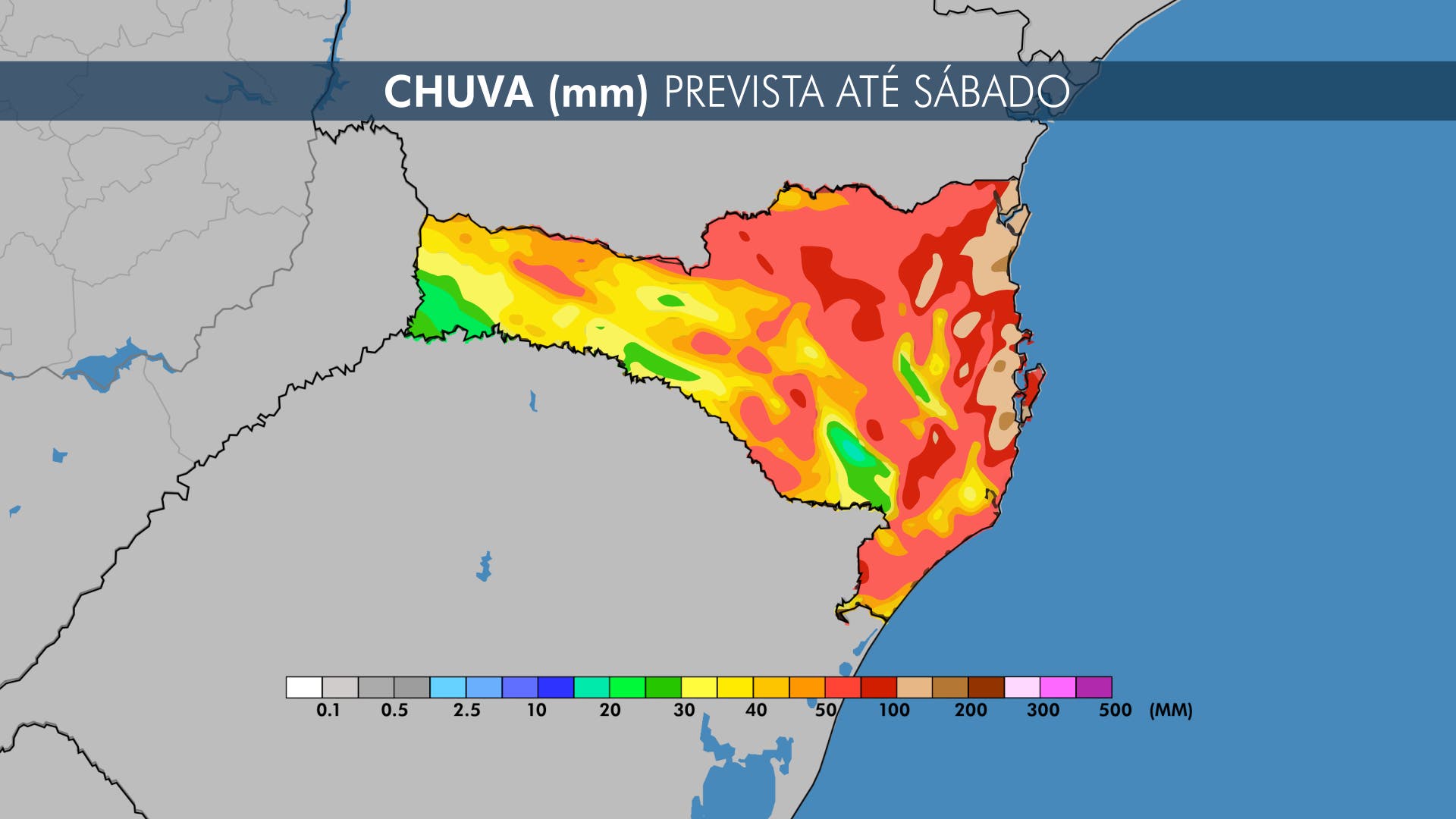 Tenho que destacar que poderá voltar a chover forte no Litoral e áreas próximas. Não há previsão de volumes tão elevados quanto ocorreram na início dessa semana, mas mesmo assim há chance de chuva forte em algumas cidades do Litoral e regiões próximas como o Vale do Itajaí e Norte.