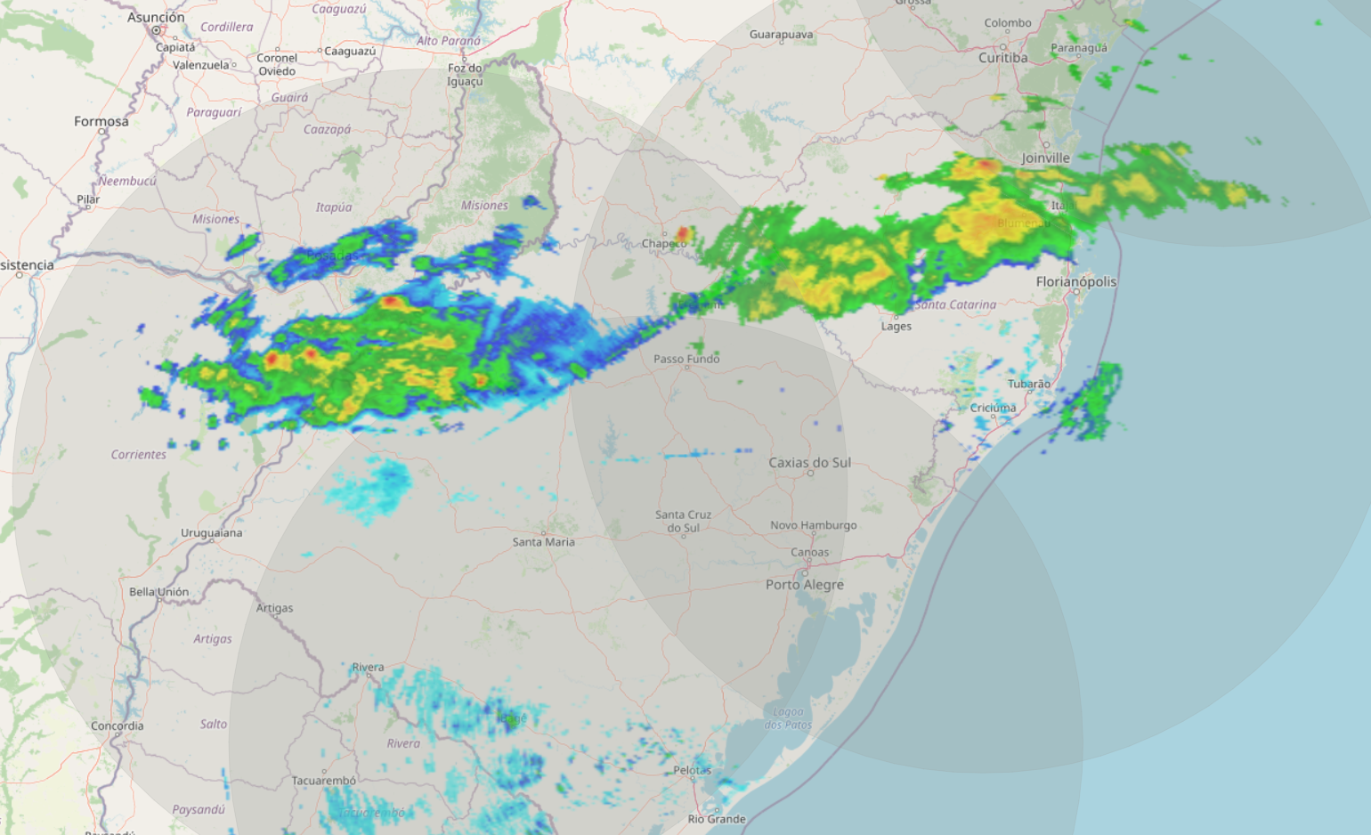 Desta forma, teremos um dia de chuva em todas as regiões do Estado com alerta para chuva volumosa e temporais associado a trovoada, rajada de vento e granizo, especialmente entre Oeste, Serra, Sul e parte do Litoral. Importante destacar que os temporais são isolados, em poucas áreas, mas o volume alto tem previsão de ocorrer em mais cidades, sobretudo Meio Oeste (próximo do RS), Serra e Sul.