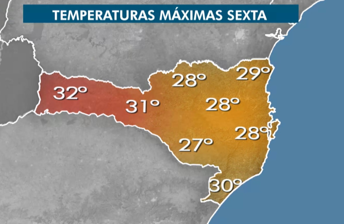 O maior destaque nos dois dias será a temperatura. Ela estará elevada ao longo das tardes com previsão de um sábado com 27 a 29°C no Sul, Serra e Grande Florinaópolis.