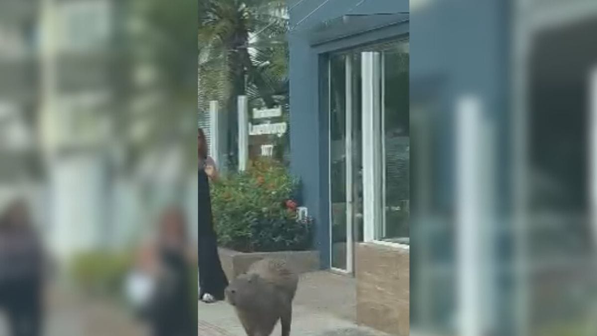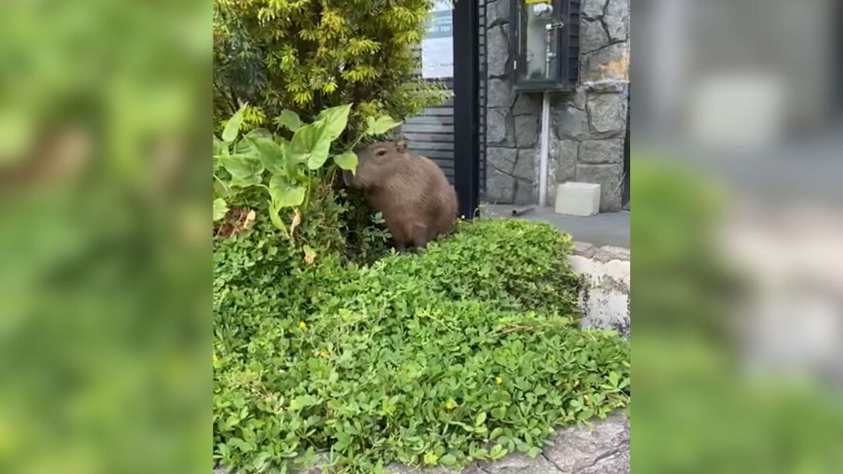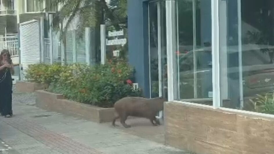 Moradores da Avenida Hercílio Luz, no Centro de Florianópolis, foram surpreendidos na manhã desta segunda-feira (17) pela presença de algumas capivaras. Uma delas foi filmada tentando entrar em um condomínio. Com a porta de vidro fechada e acuada pela presença de pedestres, acabou desistindo.