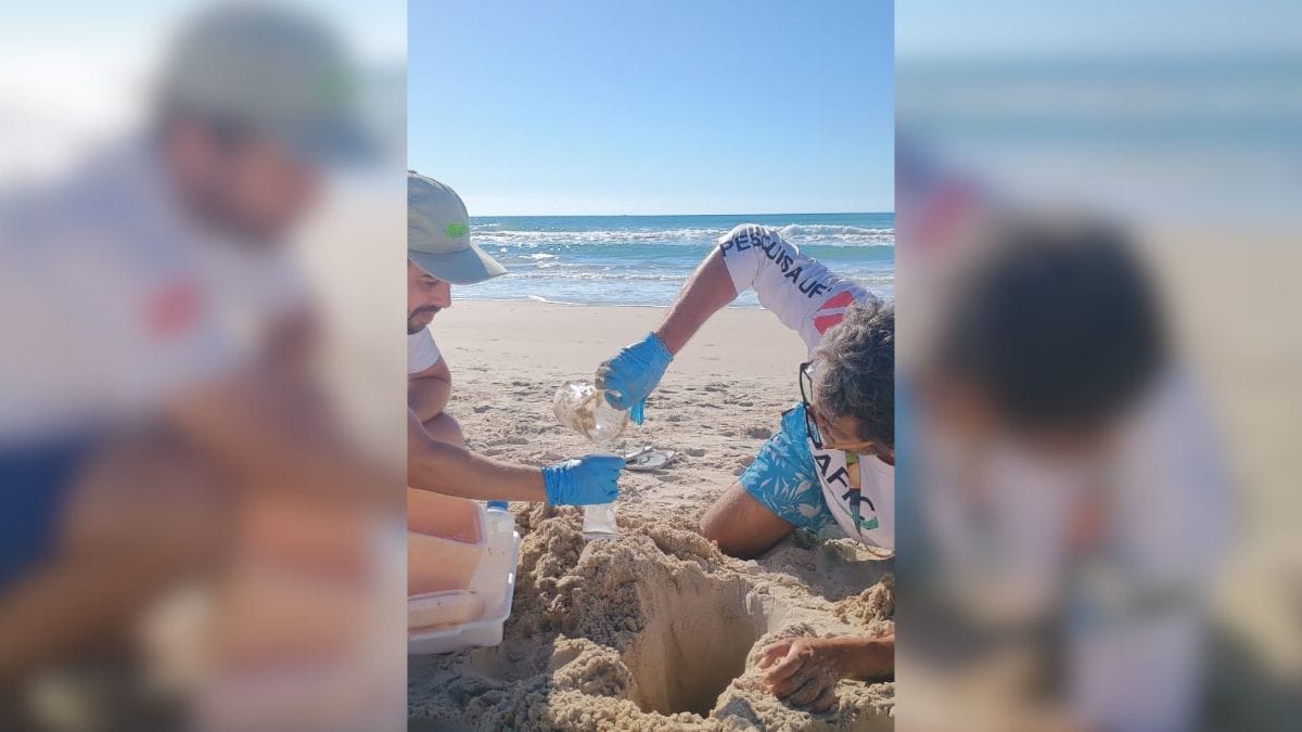 Pesquisadores coletam águas subterrâneas na praia da Joaquina: