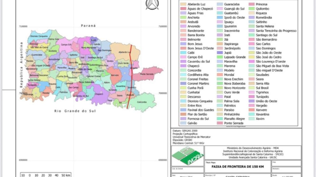 Proprietários de imóveis rurais de 83 municípios de Santa Catarina devem ficar atentos para não perderem suas terras. A Lei nº 13.178, de 22 de outubro de 2015, instituiu um novo regime jurídico para a ratificação dos registros de imóveis rurais situados em áreas fronteiriças — até 150 km da divisa territorial do Brasil — incluindo as fronteiras de Santa Catarina com a Argentina.