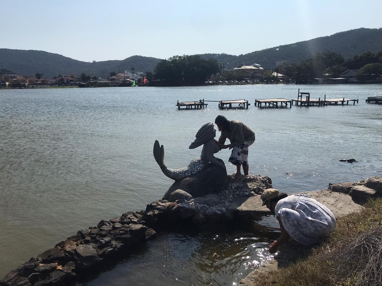 Chega ao fim o mistério da sereia da Lagoa da Conceição, em Florianópolis. A escultura foi feita pelo Coletivo Espaço Tempo, que tem o artista plástico Juan Mandala como uma das lideranças. São cinco artistas que trabalharam na obra de arte.
