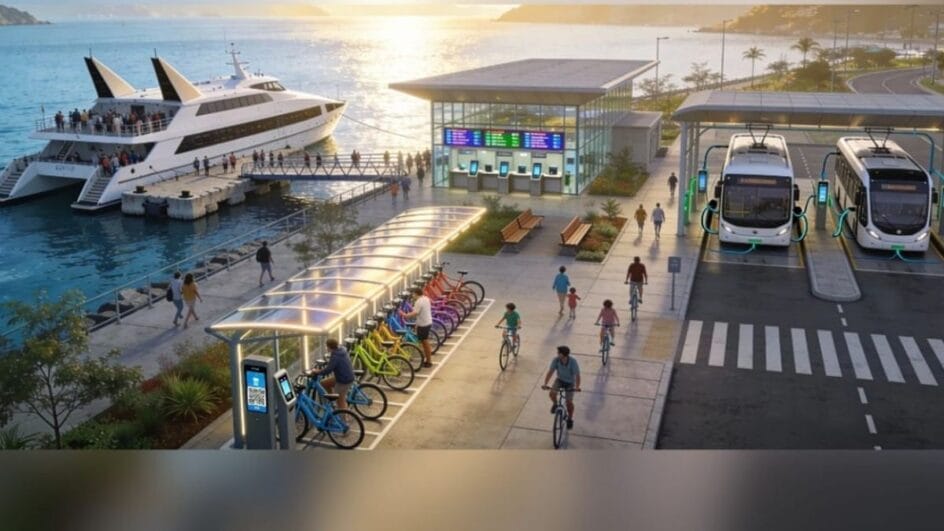 Projeção com imagens geradas por Inteligência Artificial (IA) com as diretrizes existentes para o futuro sistema de transporte coletivo multimodal e integrado da Grande Florianópolis: