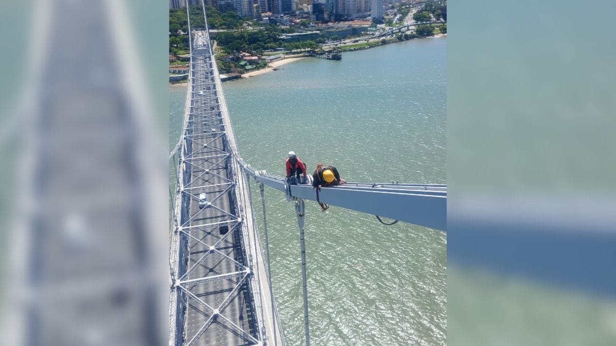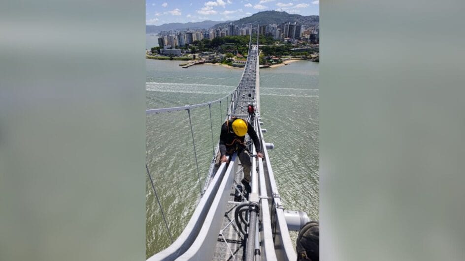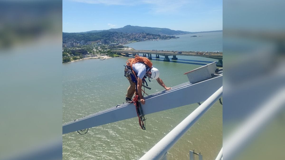 O contrato de manutenção da Ponte Hercílio Luz prevê a inspeção rotineira da obra que é o maior cartão postal de Santa Catarina. Na última semana, o trabalho foi de aferição nas barras de olhal.